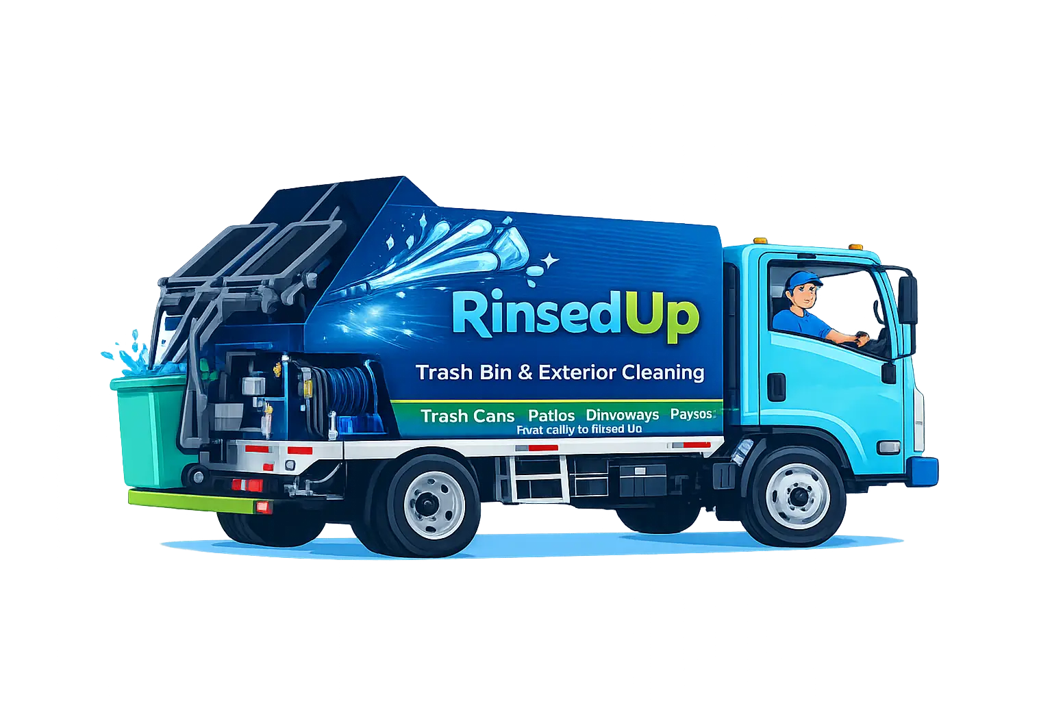 Monthly or quarterly – on one of the day after your trash is picked up – our service truck will come by your house to clean your bins. We’ll even text you a reminder to leave your bins out.